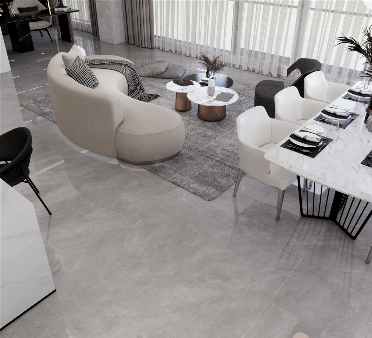 淺灰為基調,不規則白色紋理交錯分布,賦予表面豐富的深淺變化,灰白搭配,完美融合天然石材的自然色澤。