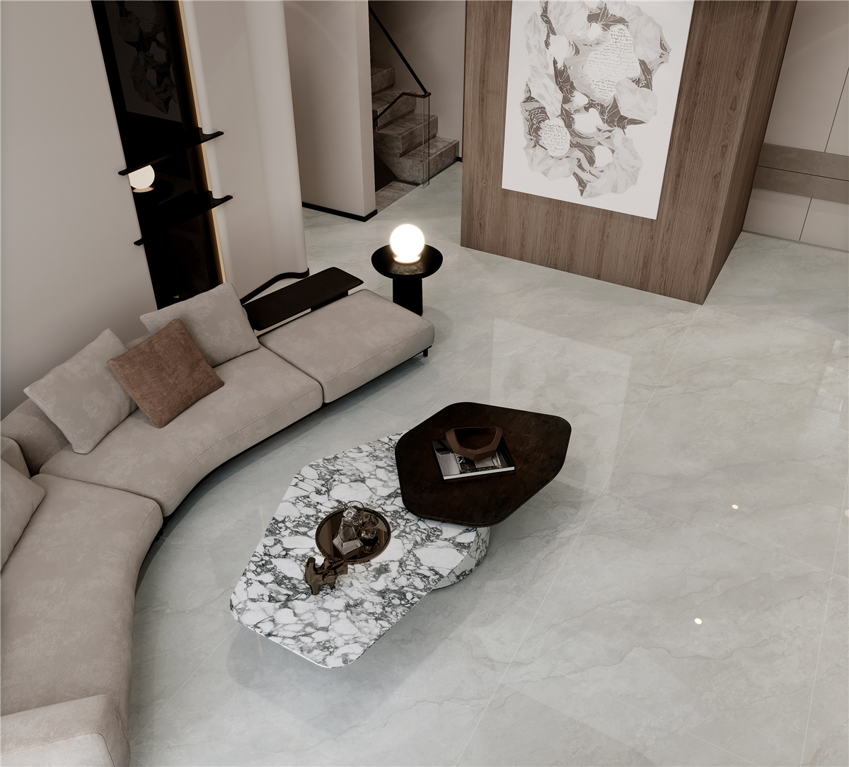 淺灰中性調(diào)的顏色,內(nèi)斂中透出獨(dú)特魅力,流暢紋理勾勒出空間質(zhì)樸靈動(dòng)的美感,盡顯現(xiàn)代輕奢氛圍感。