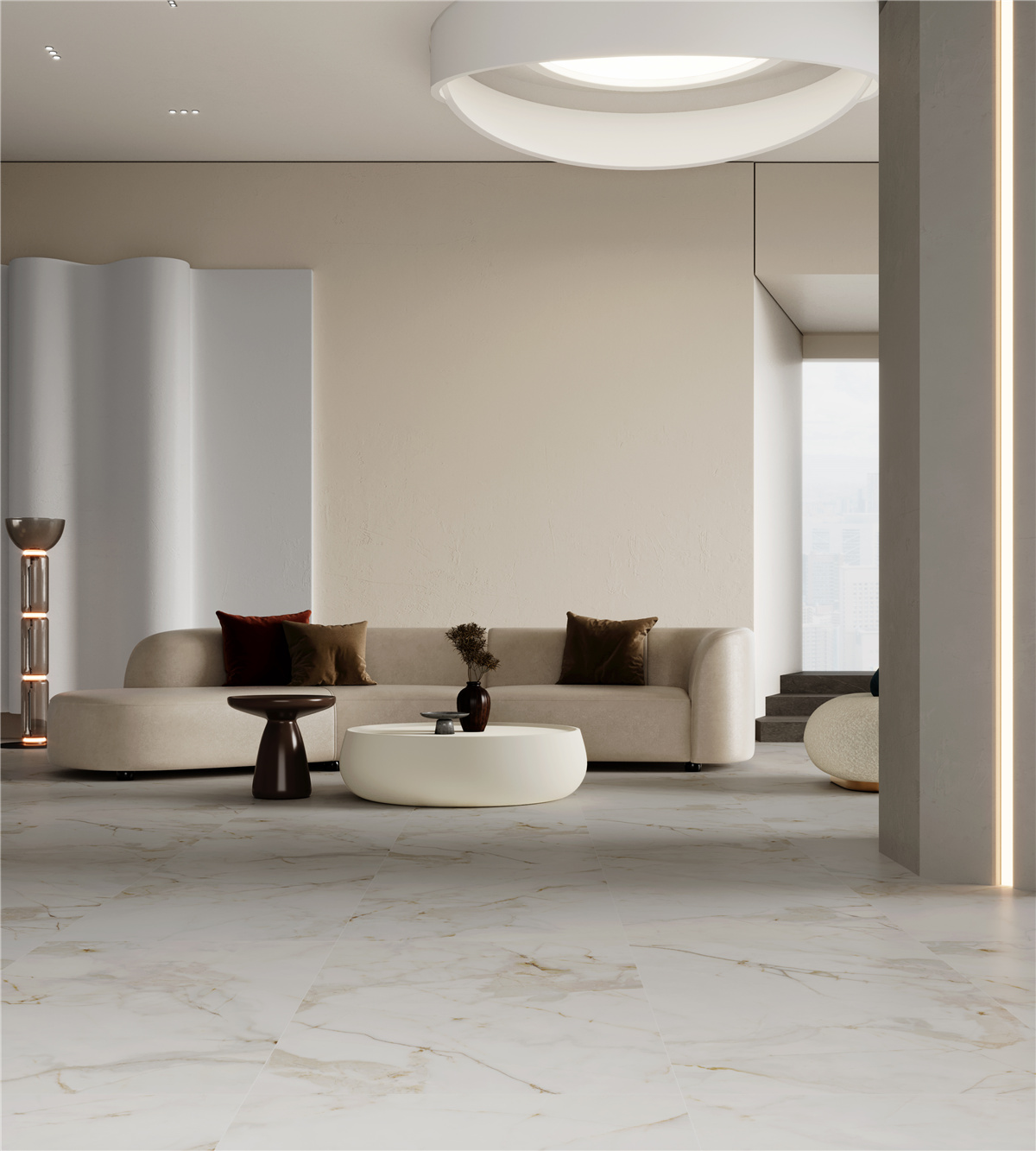 白色調(diào)紋理夢(mèng)幻典雅,純粹婉約,大氣輕盈,金色紋理躍動(dòng)于大理石面,整體視覺(jué)效果松弛有度十分簡(jiǎn)約高雅。