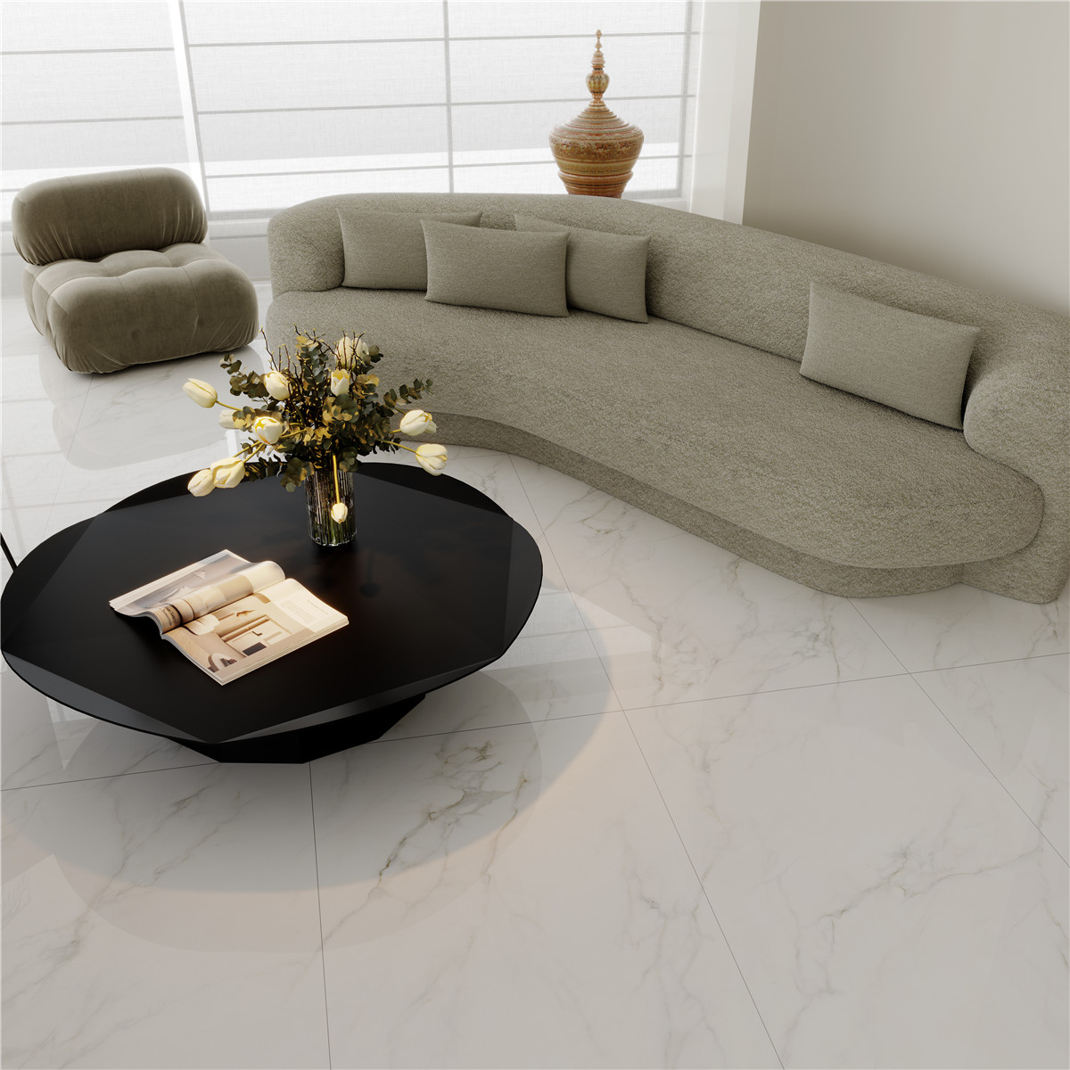 源自意大利的深邃礦脈,白色的基地穿梭金色的線條,光與影的交流如世紀冰川,獨有的溫潤色澤,仿佛是晨曦初照海面時,那抹不可言喻的金色漣漪。